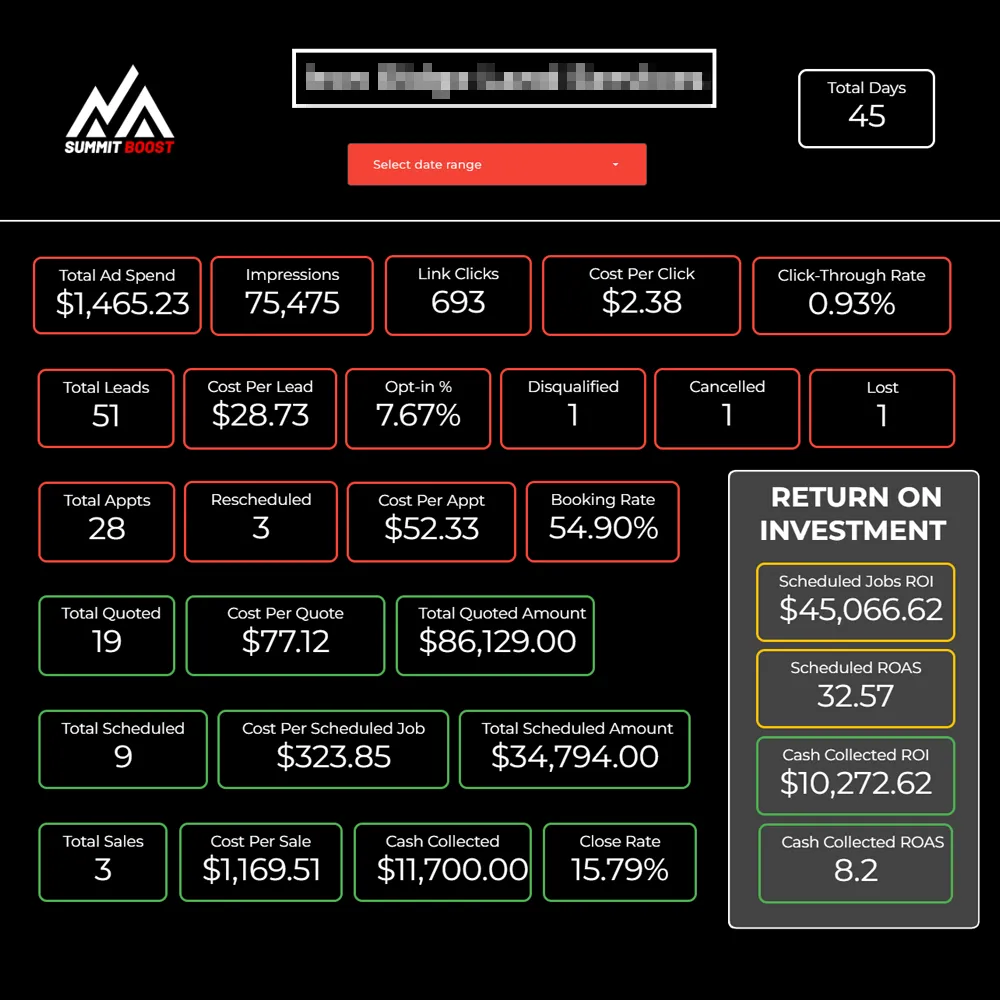 We handle everything from crafting an offer, setting up the backend sales process, creating visual appealing advertisements & monitoring the Facebook campaigns. We also manually qualify every single lead that comes through and book your estimates for you. That way all you have to do is show up on time and close the jobs.